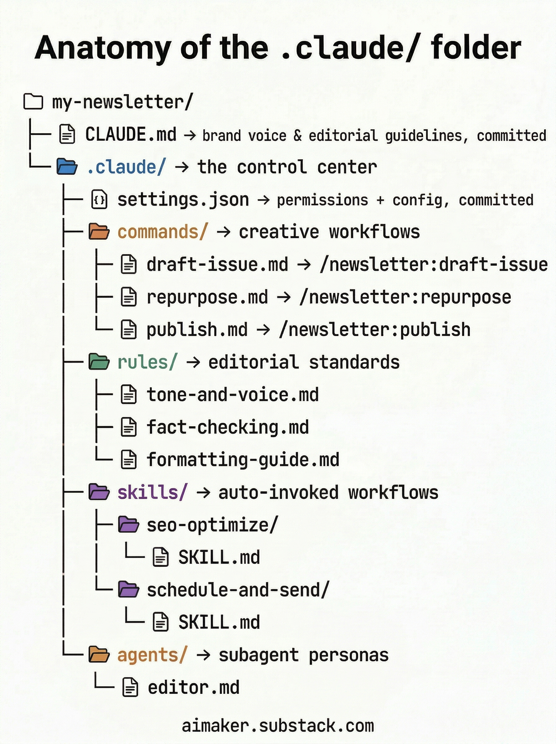 This image shows every file and folder a Claude Code project can have. Study it for a second, then take a breath. Because hereâs the thing most people miss: